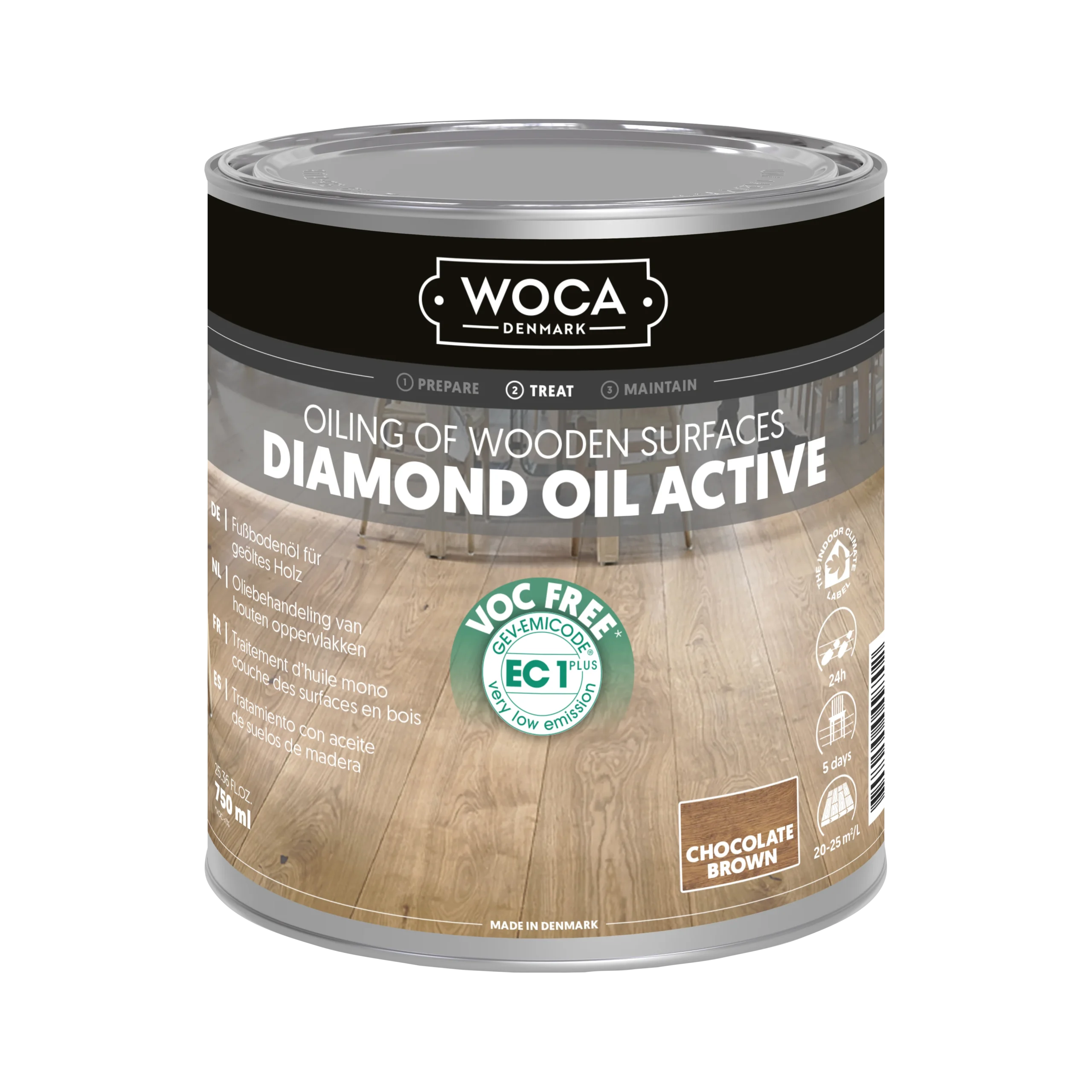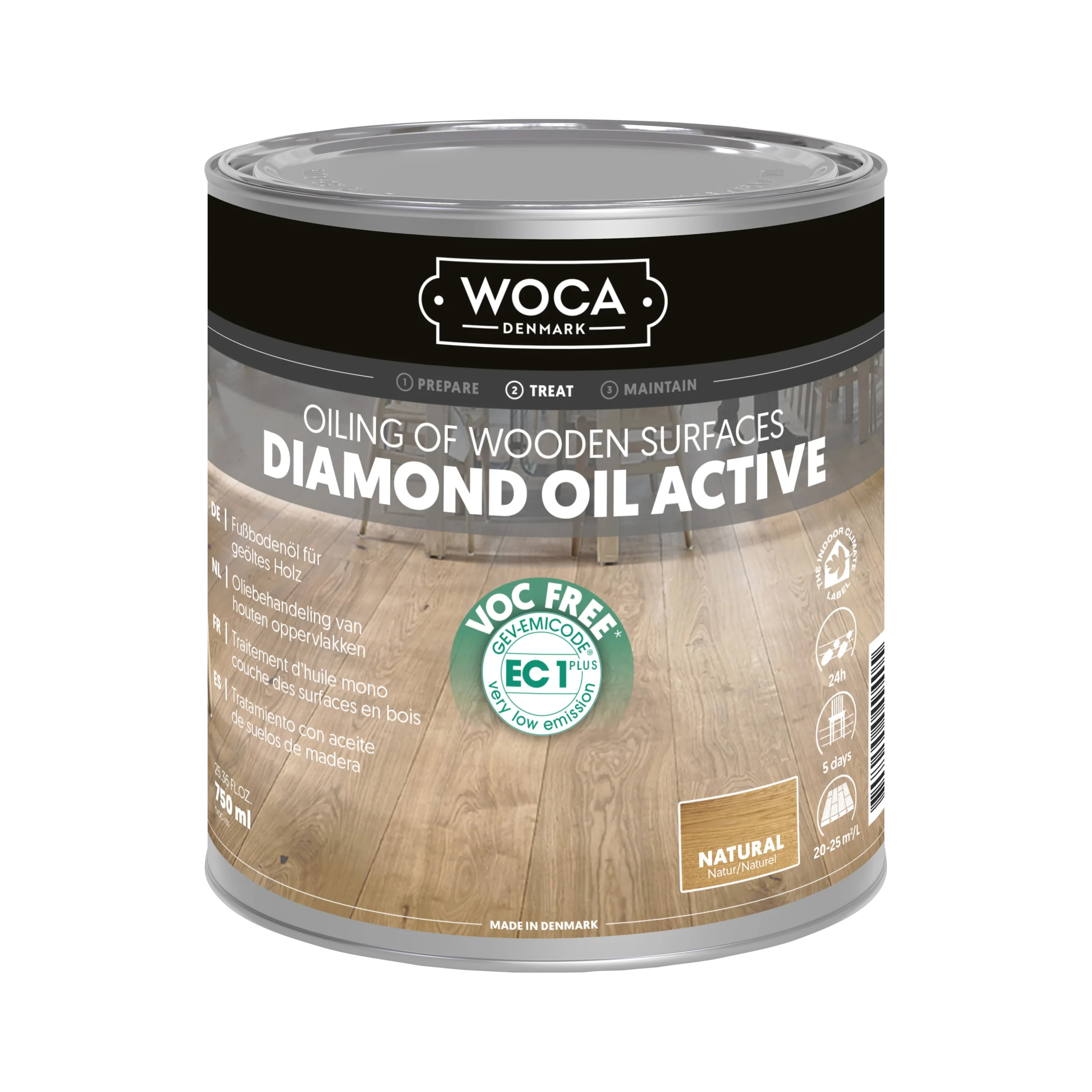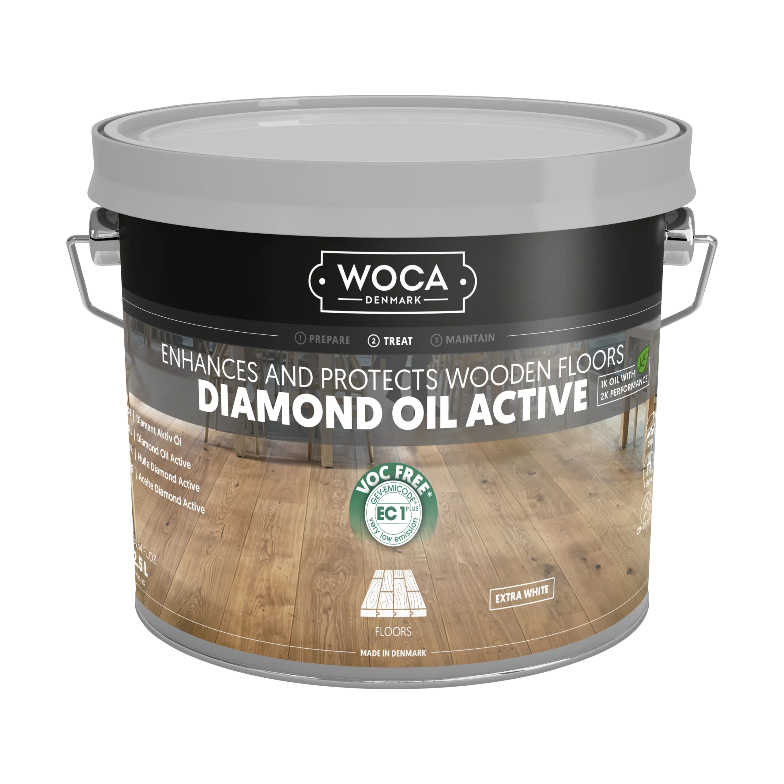 Diamond Oil Active er en bæredygtig, VOC-fri olie til trægulve, bordplader og møbler. Denne eksklusive, enkeltkomponents olie med lav lugt er slidstærk, nem at påføre og minimerer spild. Med sin hyper-crosslink-teknologi skabes en vandafvisende, skridsikker overflade, der er let at rengøre og vedligeholde. Med et tørstofindhold på ca. 99 % er olien ideel til maskinapplikation på ubehandlet eller slebet træ af enhver type.