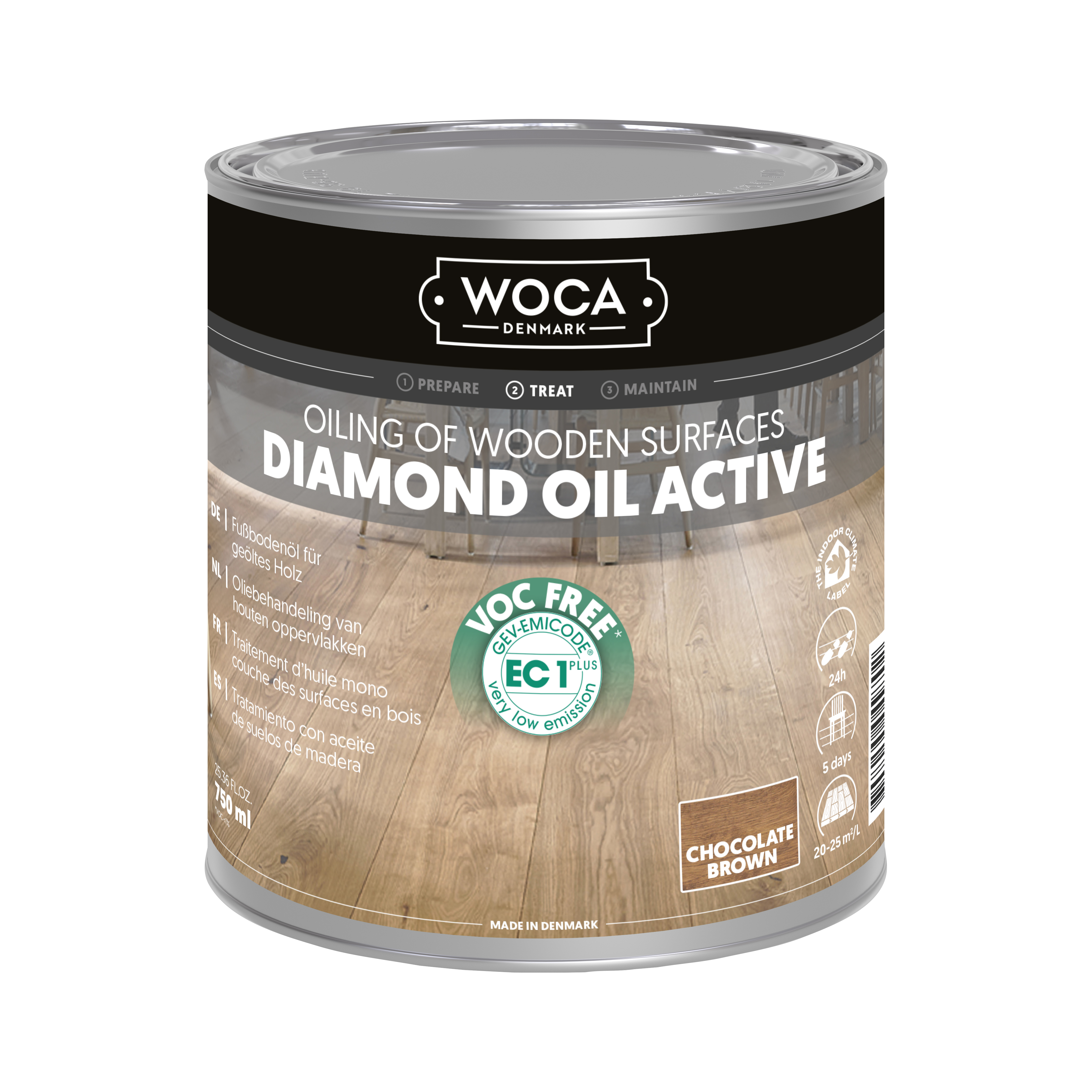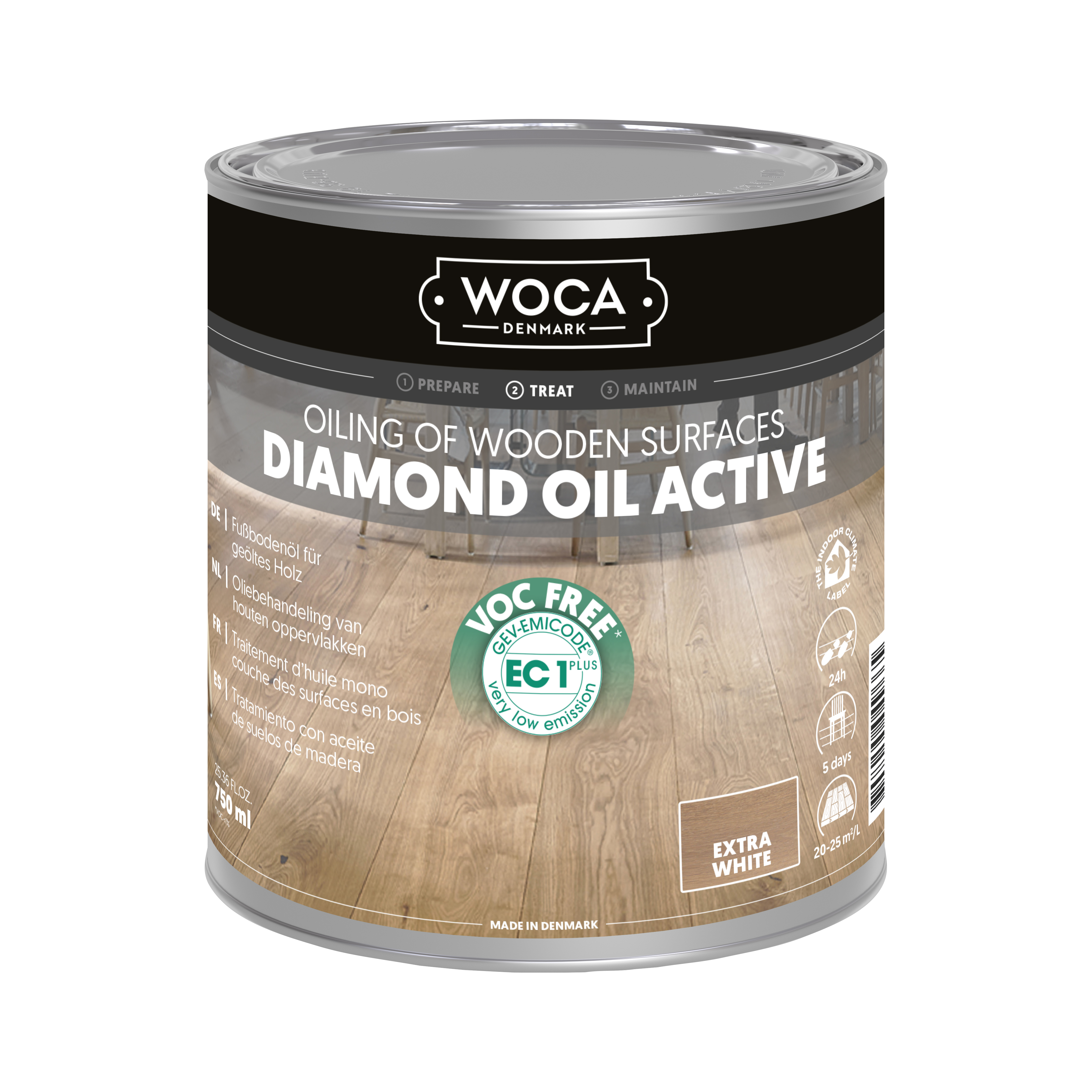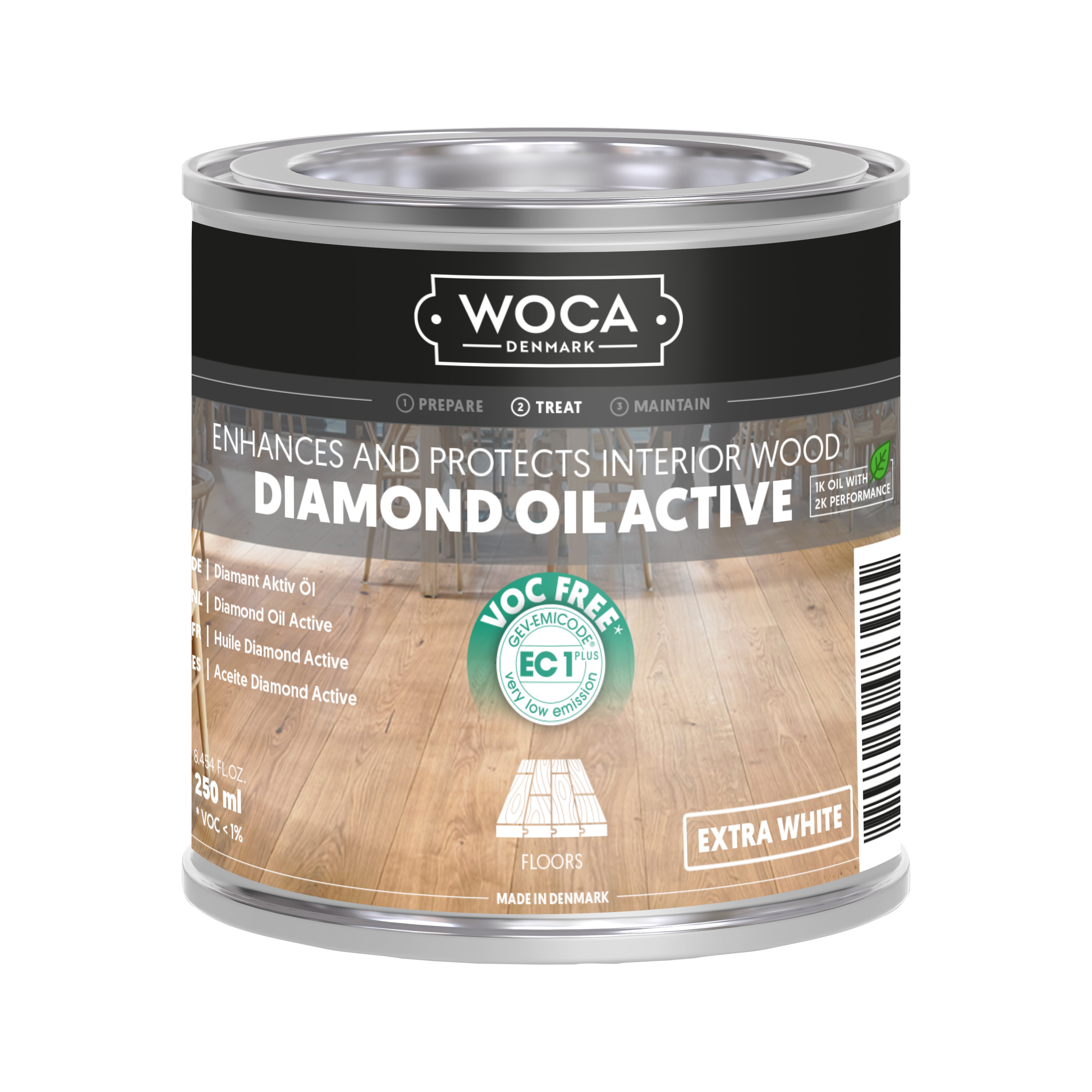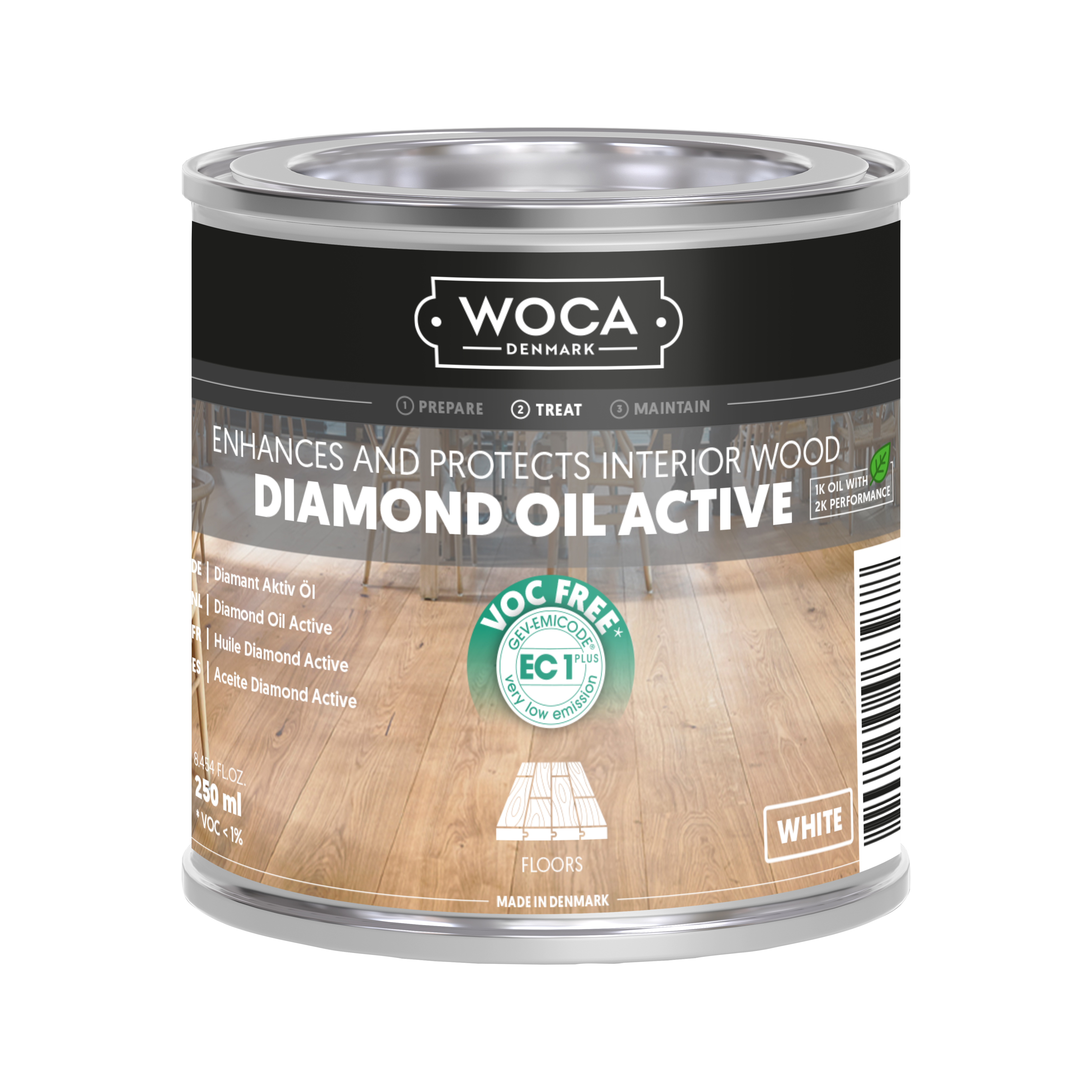 Diamond Oil Active er en bæredygtig, VOC-fri olie til trægulve, bordplader og møbler. Denne eksklusive, enkeltkomponents olie med lav lugt er slidstærk, nem at påføre og minimerer spild. Med sin hyper-crosslink-teknologi skabes en vandafvisende, skridsikker overflade, der er let at rengøre og vedligeholde. Med et tørstofindhold på ca. 99 % er olien ideel til maskinapplikation på ubehandlet eller slebet træ af enhver type.