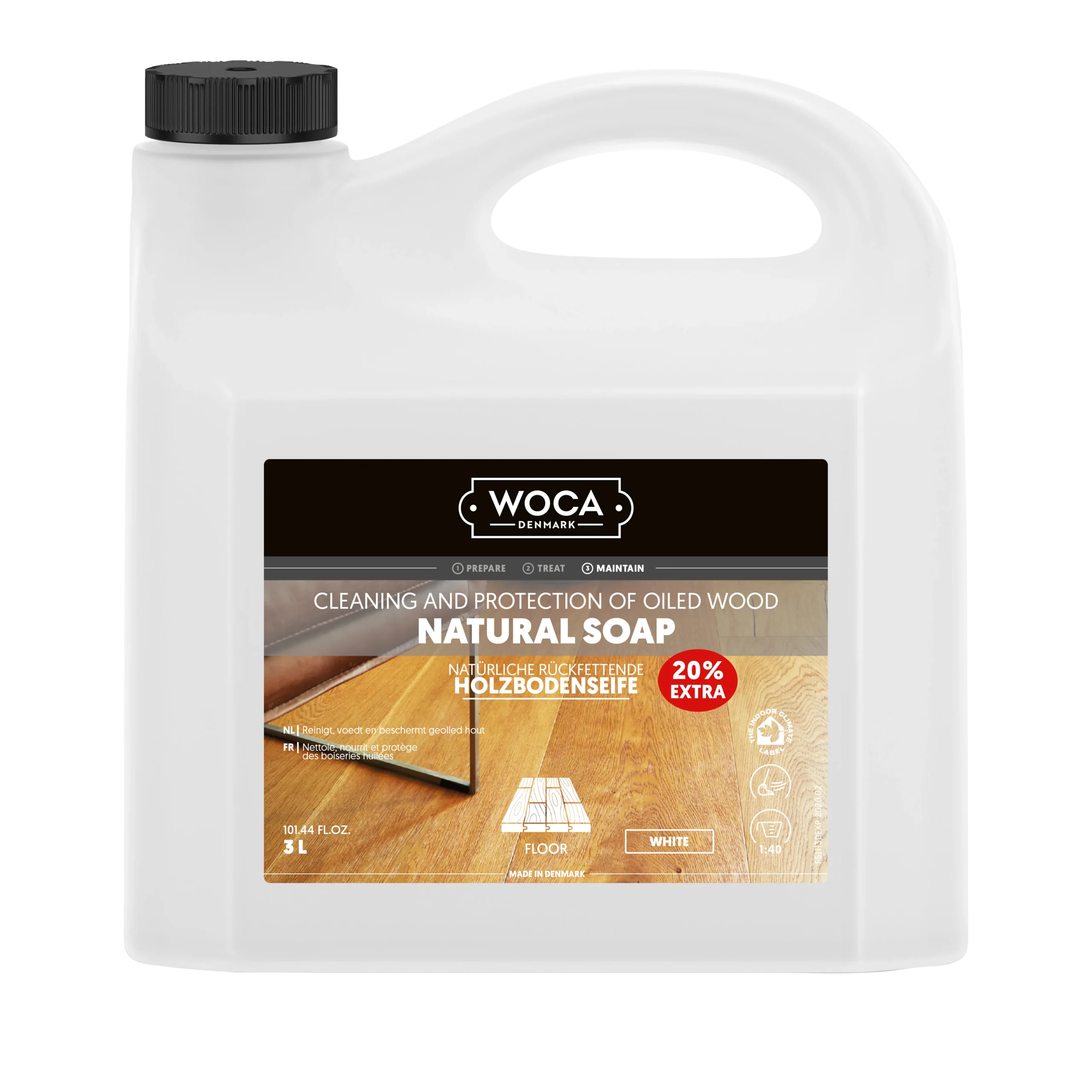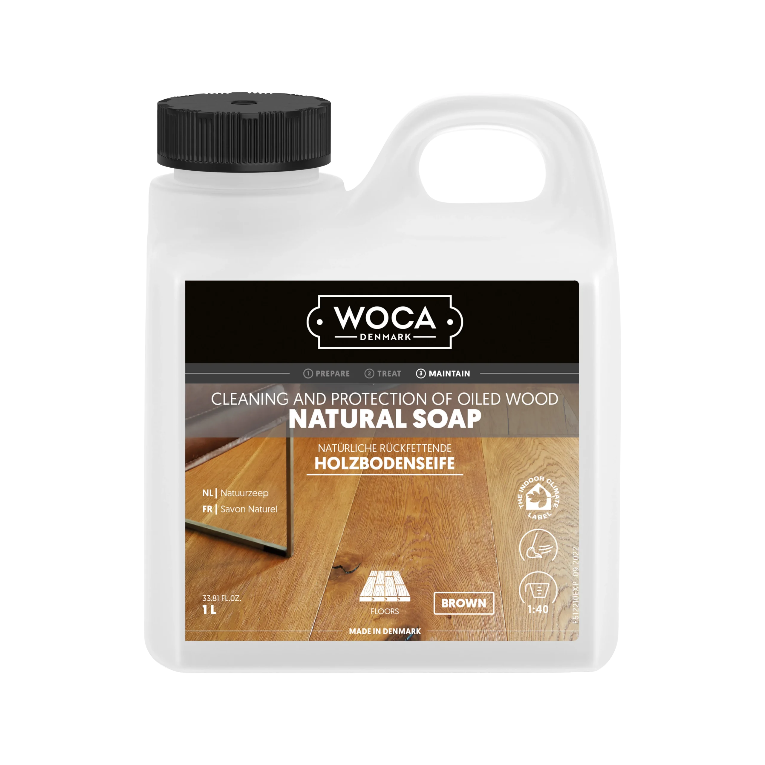 Rengør og vedligehold olie-, voks- og sæbebehandlede træoverflader med Natural Soap. Denne milde sæbe trænger ned i træet, fjerner snavs og er med til at forhindre træet i at udtørre og revne. Den efterlader en mikroskopisk, åndbar sæbefilm på overfladen, som øger resistensen og gør overfladen nemmere/enklere at holde ren. Natural Soap er indeklimamærket og indeholder ingen parfume og konserveringsmidler.