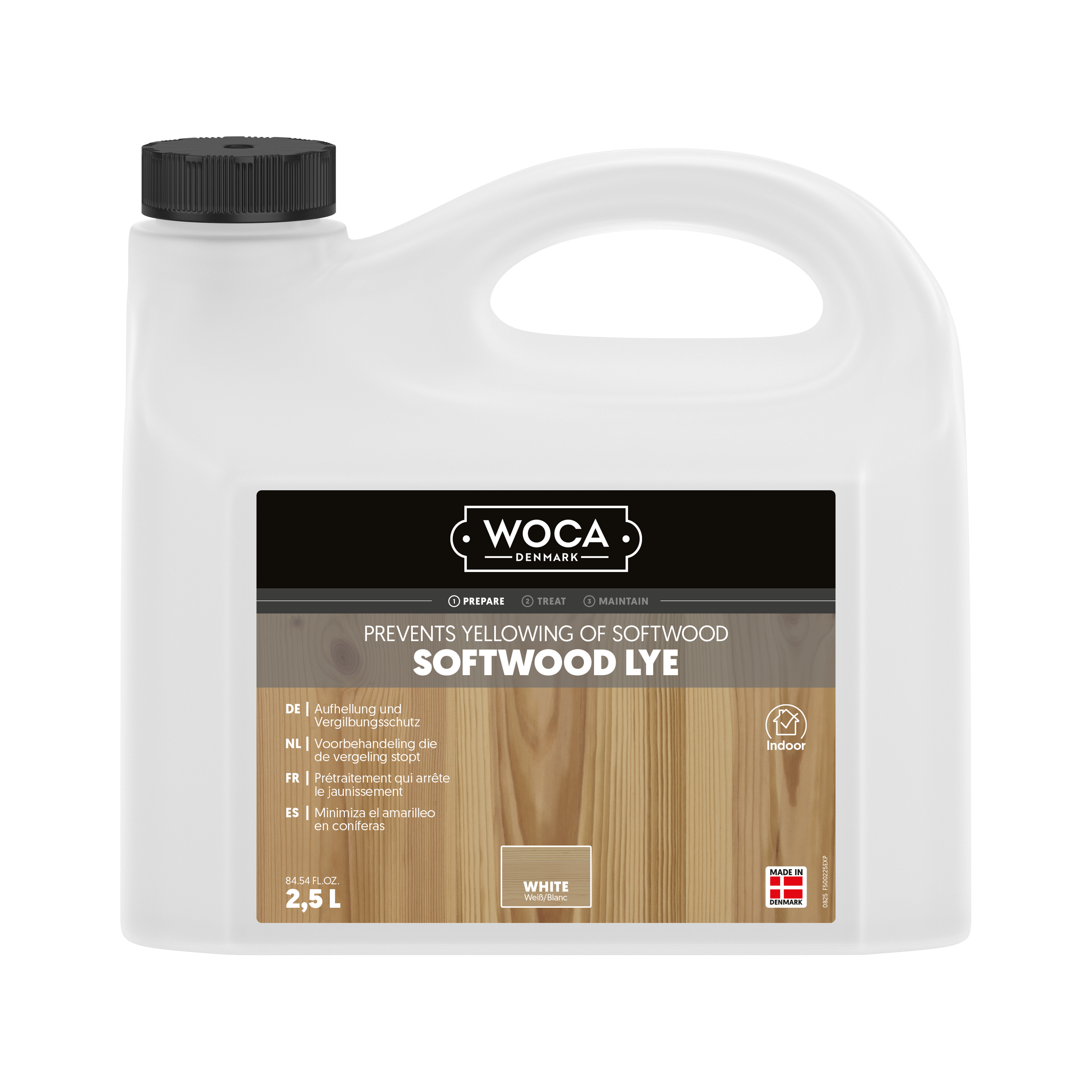 Softwood Lye anvendes til forbehandling af ubehandlet eller nyslebet indendørs træværk, som f.eks. gulve, trapper, møbler og paneler. Primingen minimerer træets naturlige gulningsproces og fremhæver træets naturlige årer, hvilket giver et lyst udseende. Softwood Lye kan bruges på alle typer blødt træ, som f.eks. fyr, gran og pich pine. Ved brug på lærketræ kan der opnås et klassisk gråligt/brunligt udseende. Softwood Lye må ikke bruges på hårdttræ eller Douglas. Den endelige farve opnås efter 1-2 måneder.
