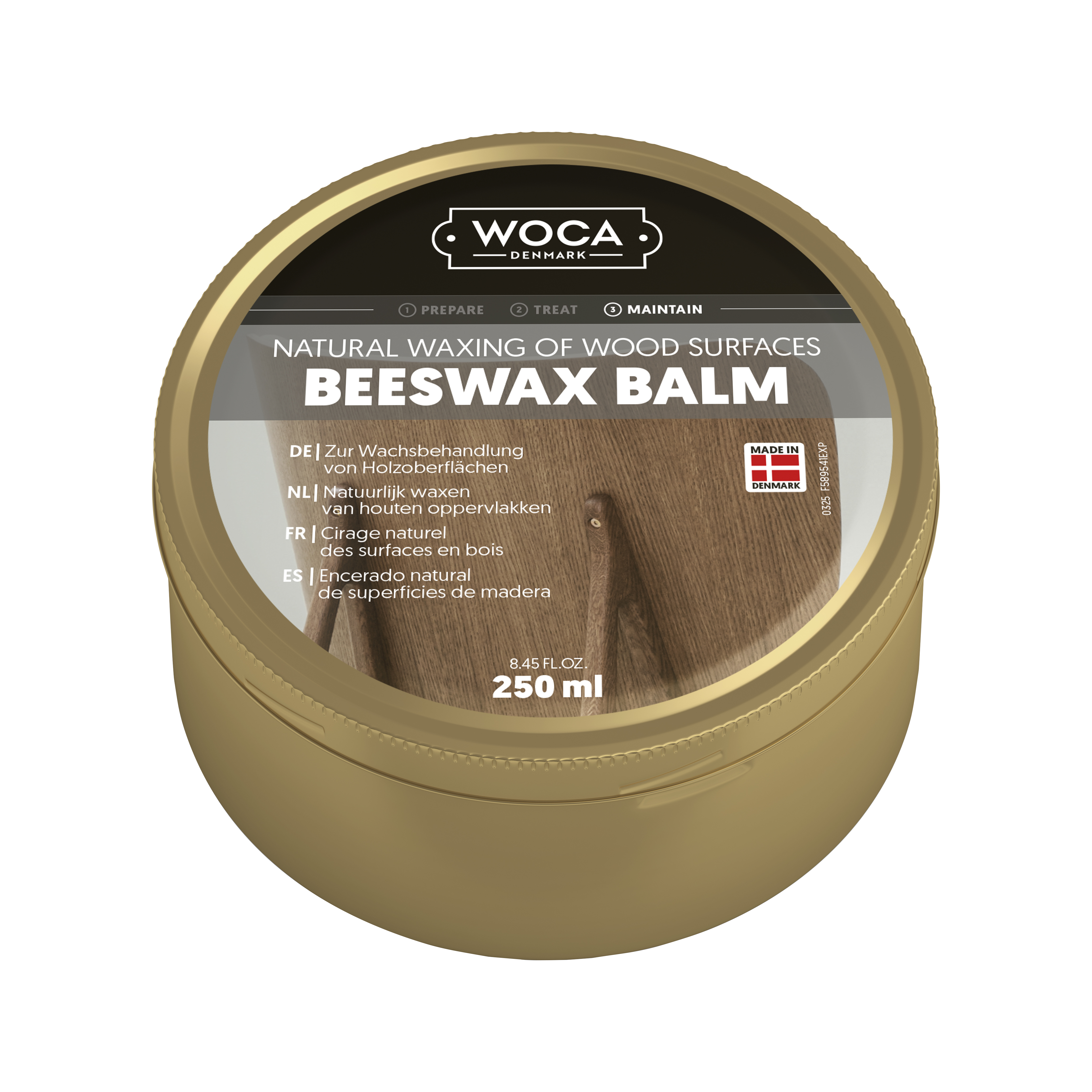 Antes de aplicar Beeswax Balm, la madera debe estar limpia, sin grasa, y completamente seca. Consejo: Para obtener una superficie más duradera, se puede aplicar una primera mano de aceite antes de la aplicación de la cera Bees´ Wax Balm.