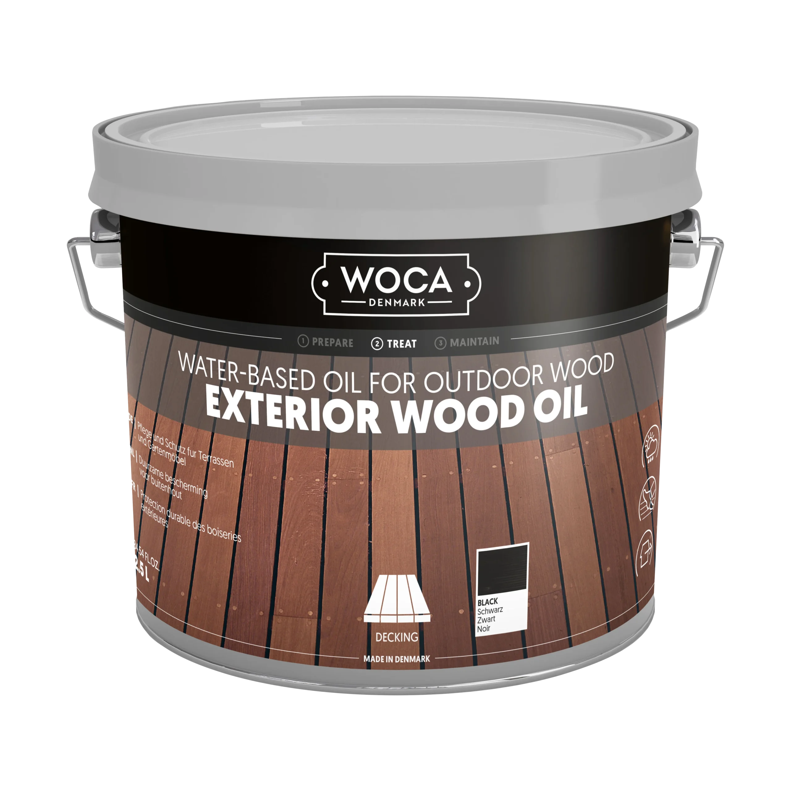 Exterior Wood Oil is to be used outdoors for basic treatment and maintenance of new and previously oiled wood surfaces such as decks, garden furniture, cladding etc. The special water-based composition of oil components ensures that the product is water-dilutable and friendly to the environment. The oil enhances the natural colour and grain of wood. Exterior Wood Oil Natural is recommended to enhance the natural colour structure of the wood. For rejuvenating of old wood surfaces, the pigmented oils are ideal as they recreate the original colour of the wood. A change of colour of the deck is also possible by applying e.g. the grey, anthracite or black oil.