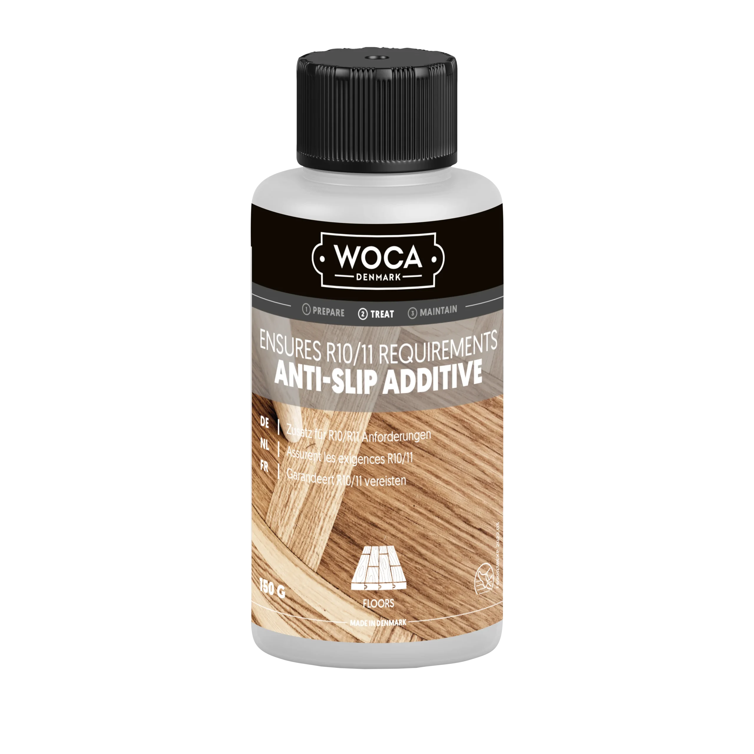 Anti-slip Additive kan worden gebruikt in de watergedragen lakken WOCA Master TS-2K Lacquer, Master XP-2K Lacquer en Master RD-2K Lacquer, indien een minder glad oppervlak vereist is.