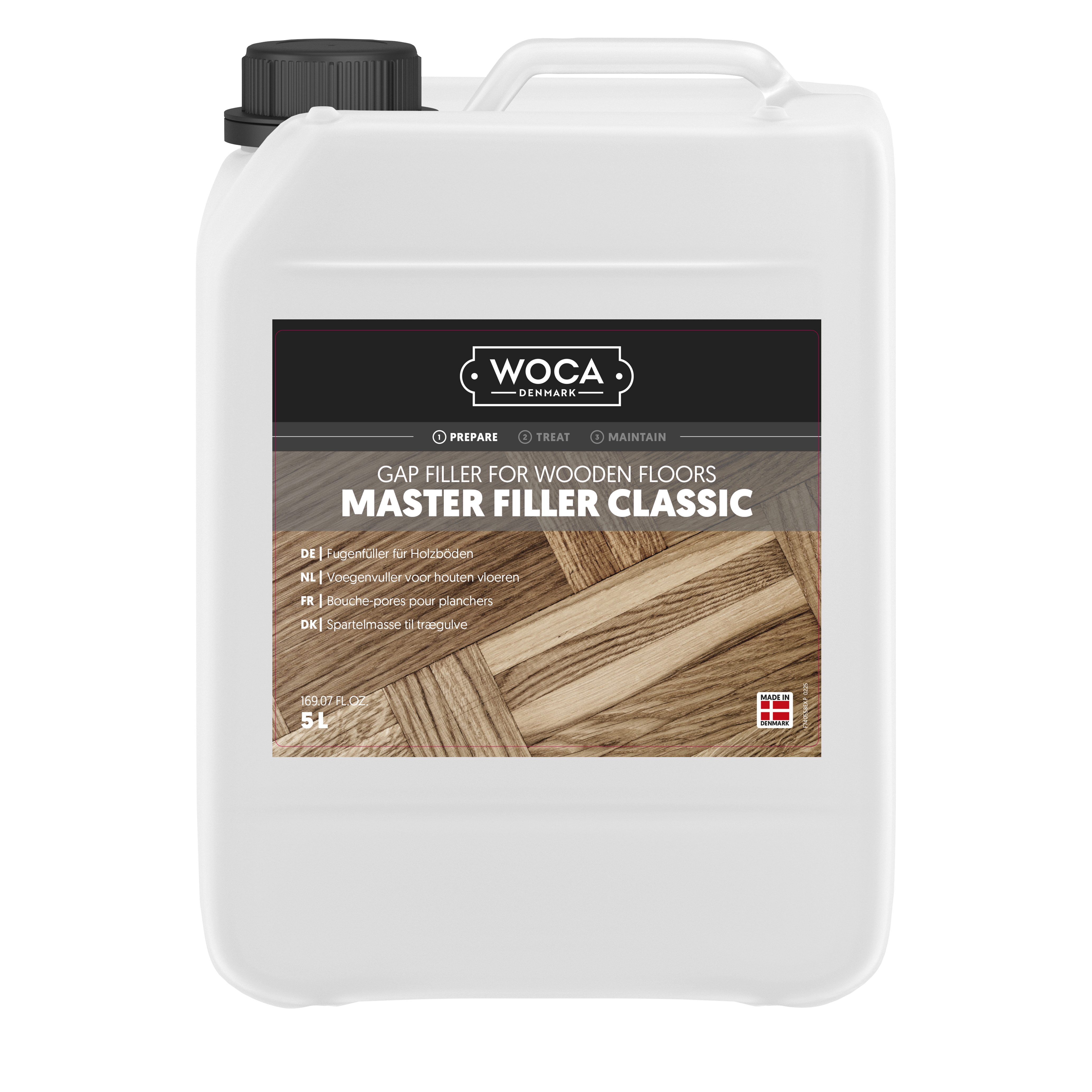 Master Filler Classic is een sneldrogende, oplosmiddelhoudende vulstof voor voegen en spleten in houten vloeren, en wordt o.a. toegepast op patroonvloeren zoals visgraat. Het is gemakkelijk om mee te werken en verkort het werkproces vanwege de snelle droogtijd.