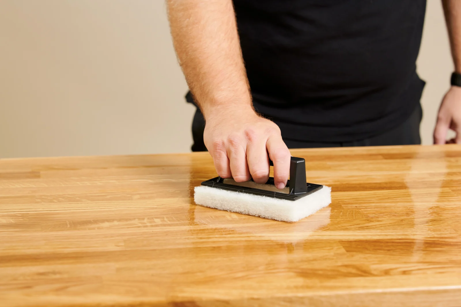 However, the daily wear and tear in the form of small scratches, greasy fingers, stains, etc., do leave their mark on the wood and can make the worktop look dull over time. Re-oiling the surface is therefore necessary to restore the wood’s beautiful appearance and increase resistance to spills and scratches.