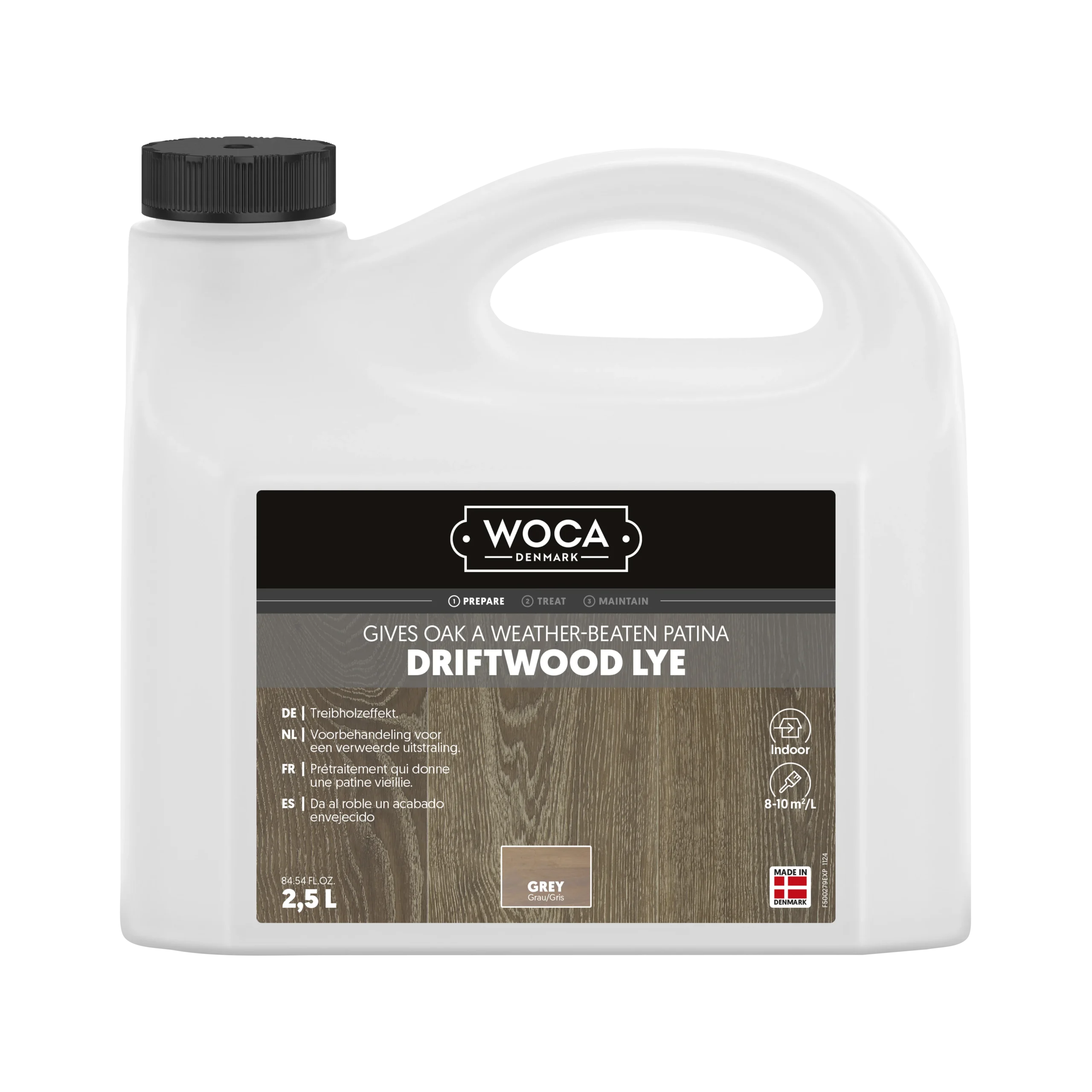 Driftwood Lye to wyjątkowy produkt na bazie wody, który nadaje drewnu wygląd surowej patyny. Jest przeznaczony głównie do drewna dębowego. Poprzez zastosowanie tego produkt, powierzchnia nabierze bardzo przyjemnej dwuwymiarowej kolorystyki. Powierzchnię należy wykończyć za pomocą jednego z olejów WOCA.