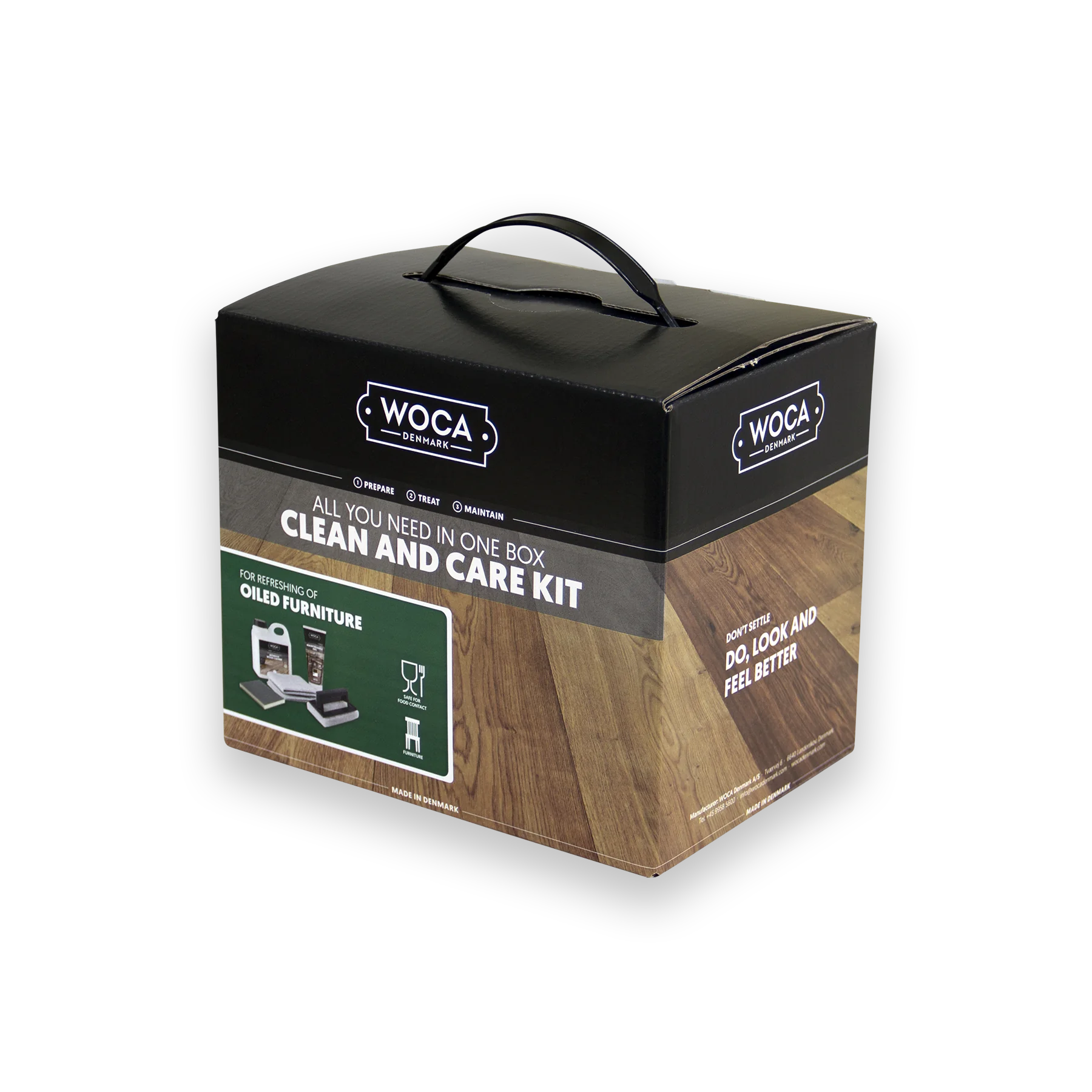 Wood Furniture Care Kit, Oil stosuje się do odświeżania olejowanych mebli drewnianych, by zachowały estetyczny wygląd przez wiele lat. Pielęgnuje i odświeża drewno, nadając mu atrakcyjny wygląd oraz trwałą olejowaną powłokę. W skład zestawu wchodzi wszystko, co jest potrzebne do przeprowadzenia całej procedury: 200 ml Maintenance Gel, 1L Intensive Wood Cleaner, czarna wkładka szlifierska, biała wkładka polerska, ściereczka niepozostawiająca włókien oraz instrukcja.