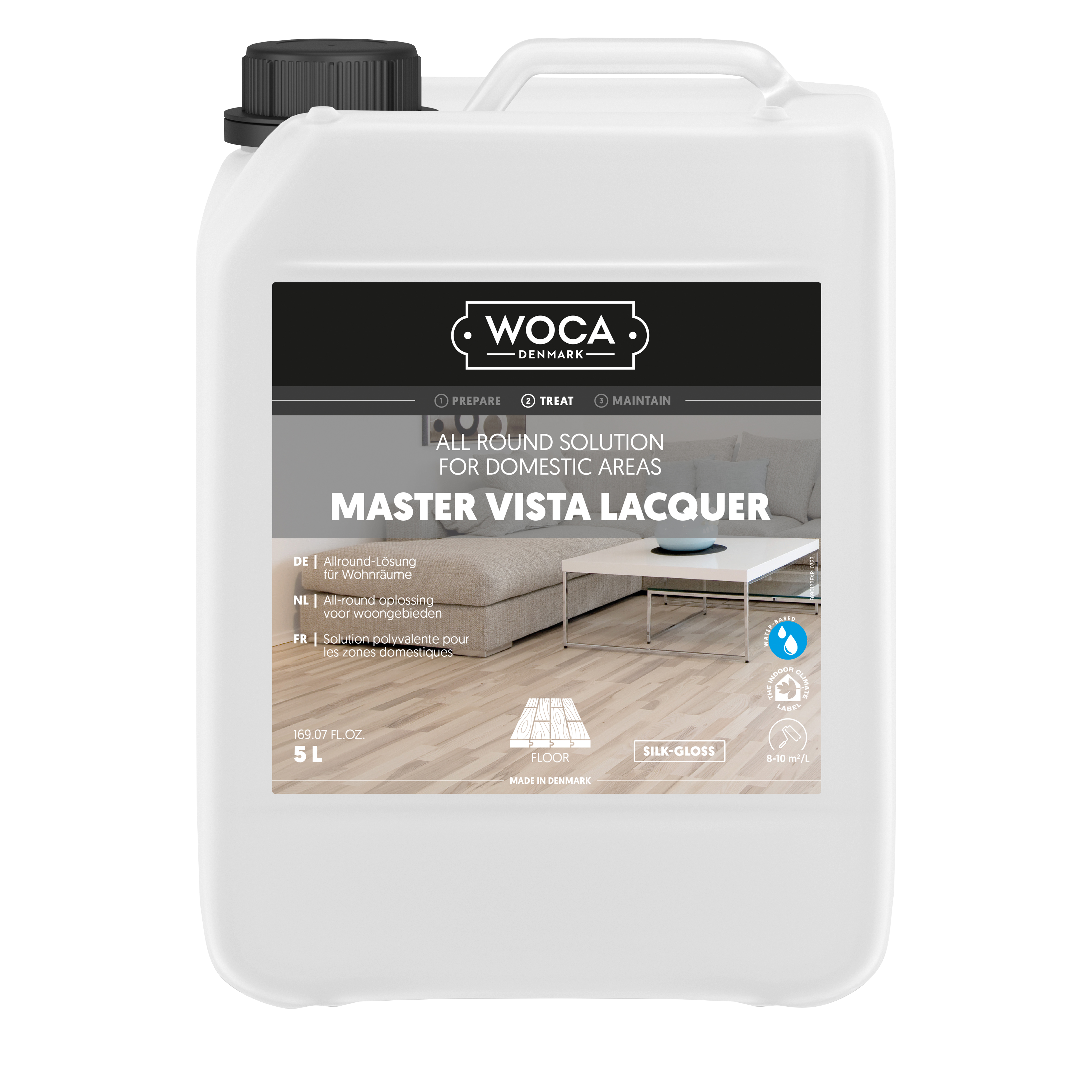 Master Vista Lacquer to wodny lakier, który jest niemal całkowicie pozbawiony zapachu. Wykończona nim powierzchnia charakteryzuje się wysoką trwałością i odpornością.Produkt tylko w minimalnym stopniu wpływa na odcień drewna. Preparat idealnie nadaje się do podłóg we wnętrzach mieszkalnych, gdyż łączy łatwość aplikacji z doskonałą ochroną drewna we wszystkich pomieszczeniach.